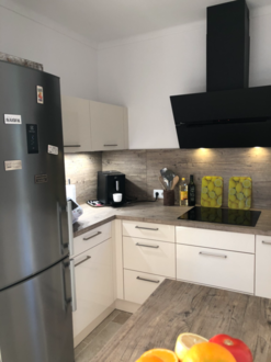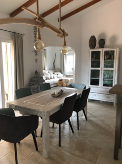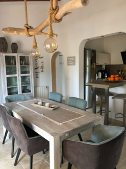 Das geräumige Esszimmer schließt sich an die neue offen gestaltete Küche mit allen annehmlichkeiten .